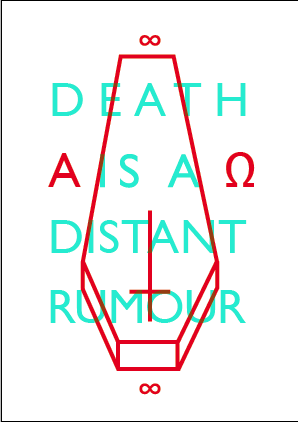 I started placing these in a way that meant something,analytically, with the coffin as the centrepiece. Eternity at the top, being strived for. Earth at the bottom, the ultimate resting place and the alpha and omega symbols running from left to right, the eye following that journey from beginning to end. I sent the design with everything excluding the pentagram to daisy, and she said it had too much going on. She was right, I'd thrown everything but the kitchen sink at it and now it was a bit messy. I removed the text, which had since been translated into french (keeping the vibe from the company name and the ouija board going) I tried the coffin and the symbols on their own, as well as with the pentagram in a secondary colour, overprinted. I need to get some feedback from people as to which of these they believe is working most effectively.